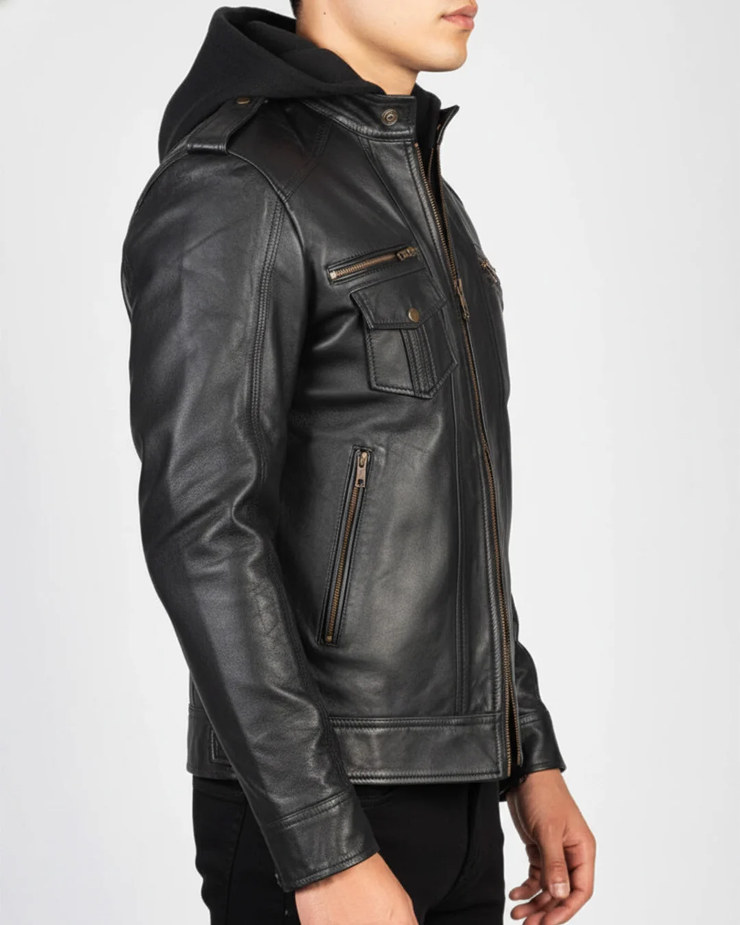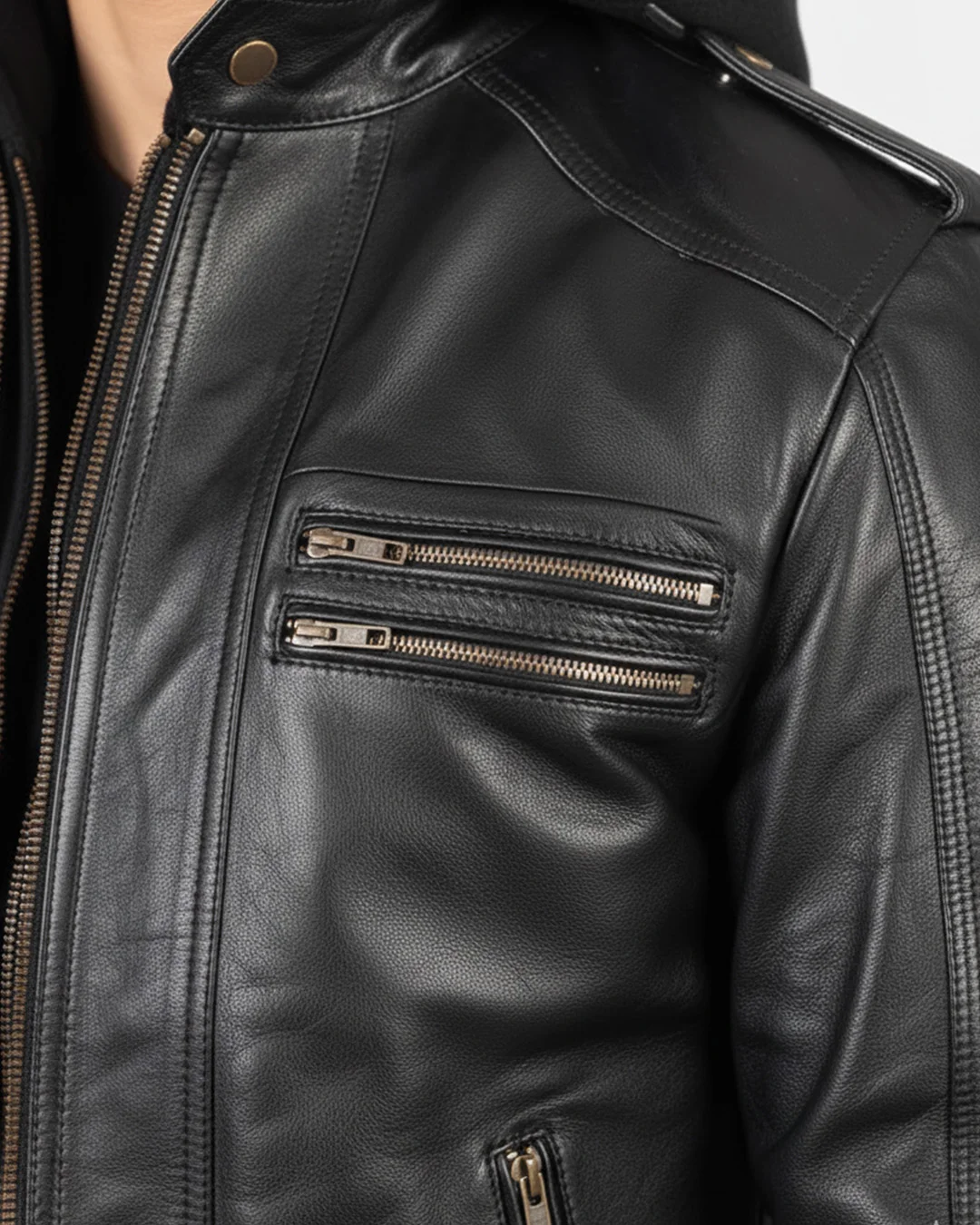 The Casual Hooded Leather Jacket for Men from Leather Prestige offers the best of both worlds: everyday comfort and refined leather styling. Crafted from premium leather, it features an attached hood that introduces a relaxed, modern edge, perfect for shifting weather and casual outfits. Designed with a slightly spacious fit, this jacket allows easy layering over tees, shirts, and light sweaters while maintaining a clean silhouette. The durable leather exterior provides reliable protection, while the soft interior lining delivers warmth without feeling heavy or bulky. With the hood, the look transitions effortlessly from daytime errands to evening outings. This jacket is ideal for men who want style that works with real life. It pairs well with jeans, joggers, chinos, and casual footwear, making it a go-to piece for everyday use, travel, or weekend plans. Fine stitching and polished finishing give it a premium feel without appearing flashy. Functional features such as practical pockets and comfortable closures add convenience for daily wear. The hood not only enhances comfort but also adds a youthful, laid-back attitude. Versatile, comfortable, and smartly designed, the Casual Hooded Leather Jacket is an outerwear essential you can rely on season after season.