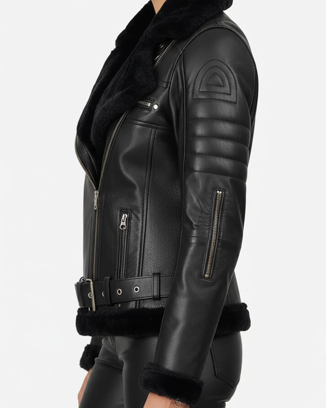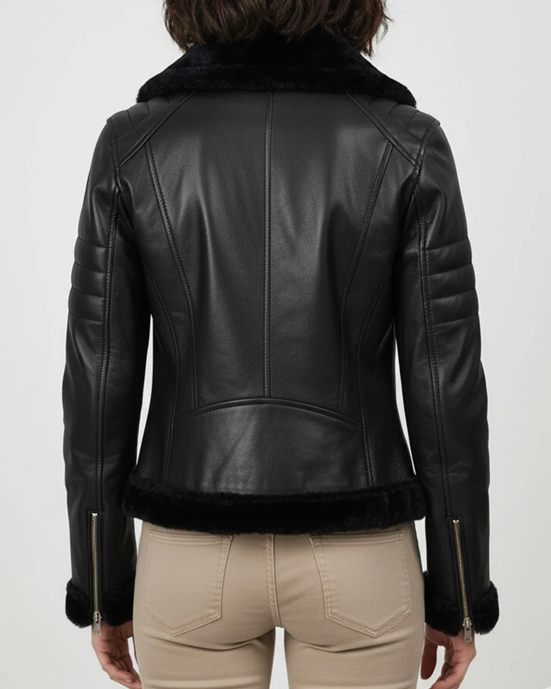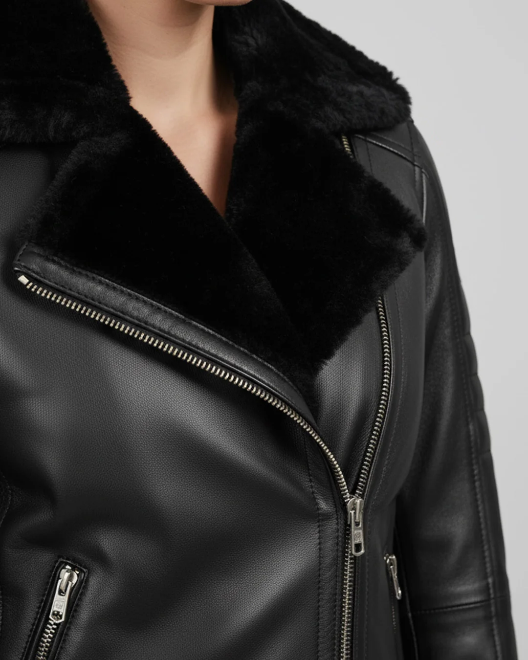 The Faux Fur Leather Jacket from Leather Prestige combines warmth, texture, and modern elegance into a statement outerwear piece. Designed with a smooth leather exterior and a luxurious faux fur lining, this jacket offers comfort without compromising style. The contrast between the sleek leather surface and the soft faux fur interior creates a sophisticated look that stands out in colder seasons. The jacket provides insulation while remaining lightweight, making it suitable for daily wear during the winter months. A structured fit enhances its polished appearance, while carefully designed closures ensure ease of wear. Perfect for casual outings and evening looks, this jacket adds character to any outfit. The faux fur detail elevates the overall aesthetic, which gives it a luxurious feel, while remaining practical. Its robust materials ensure that the jacket maintains its shape over time. The Faux Fur Leather Jacket is an excellent choice for those seeking warmth, comfort, and a sophisticated edge in their winter wardrobe.