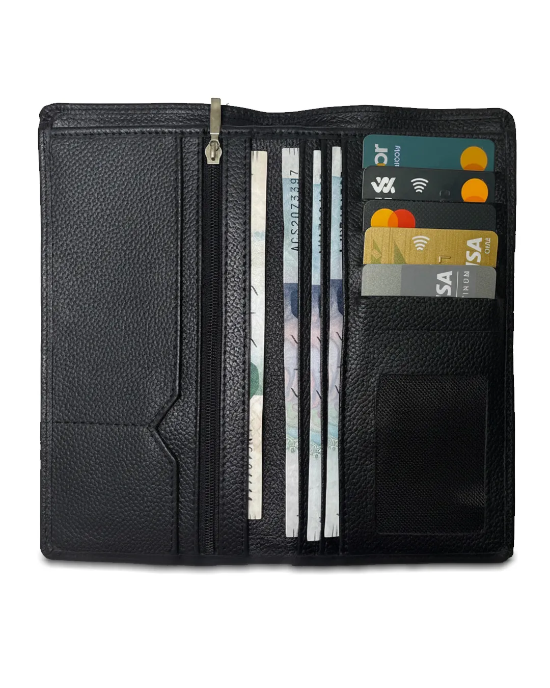- Multiple card slots and compartments for cash and IDs