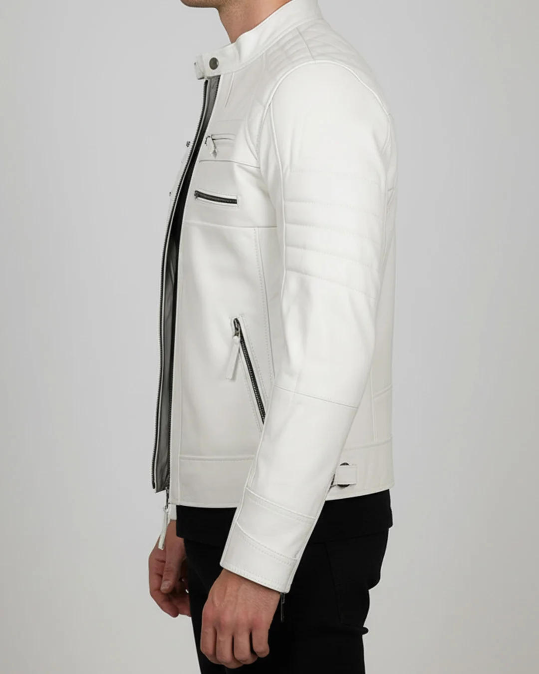 The Slim Fit White Leather Jacket for Men from Leather Prestige is crafted for those who appreciate clean, modern, and standout style. Made from premium leather, its crisp white finish creates an eye-catching yet sophisticated look that instantly elevates any outfit. The slim-fit cut follows the body’s natural lines, offering a sleek profile while still allowing comfortable movement. Minimal detailing keeps the design sharp, contemporary, and easy to style. Whether paired with dark denim, monochrome outfits, or layered over casual wear, it delivers a bold contrast that feels refined rather than overpowering. A soft interior lining ensures all-day comfort, while durable stitching and premium materials guarantee long-lasting wear. Despite its striking color, the jacket remains surprisingly versatile across seasons ideal for evenings, events, or polished everyday looks. Functional pockets and quality zippers add practicality without interrupting the streamlined design. Over time, the leather maintains its integrity and structure, preserving the jacket’s fresh, tailored appearance. For men who favor confident, minimal, and fashion-forward outerwear, the Slim Fit White Leather Jacket delivers modern elegance with classic leather durability making it a statement piece worth owning.